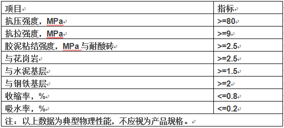 1、 制作耐腐蝕砂漿地面、花崗巖、耐酸磚等塊材的勾縫;