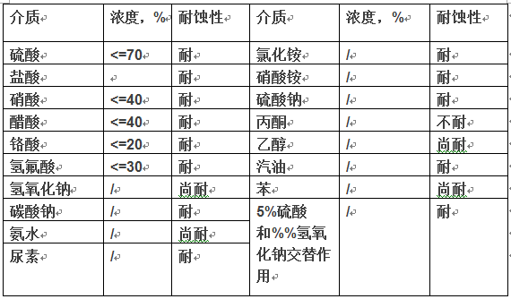 2、 耐酸、堿、鹽、優(yōu)良的耐化學(xué)介質(zhì)、濕態(tài)腐蝕性氣體性能;