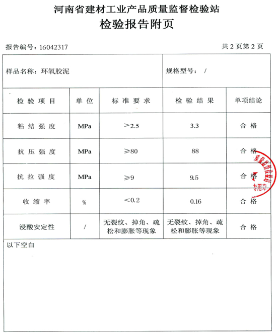 三、環(huán)氧膠泥的配比: 公司技術(shù)部根據(jù)使用環(huán)境、溫度、濕度設(shè)定;